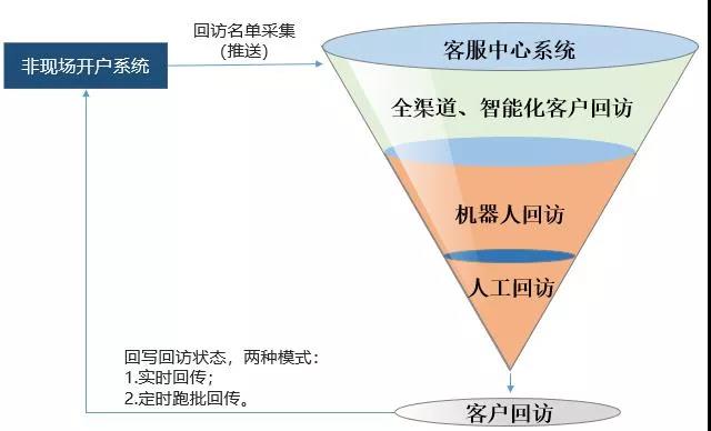 但隨著新開戶用戶不斷攀升,需要越來越多的客服人員進行回訪,這給券商客服中心帶來了巨大壓力,也給企業(yè)增加了運營成本。 為此,星網(wǎng)信通推出漏斗式模型非現(xiàn)場開戶回訪方案,引進人工智能技術(shù),用外呼機器人來完成大多數(shù)外呼回訪工作,助力單向視頻開戶實現(xiàn)業(yè)務(wù)閉環(huán)。