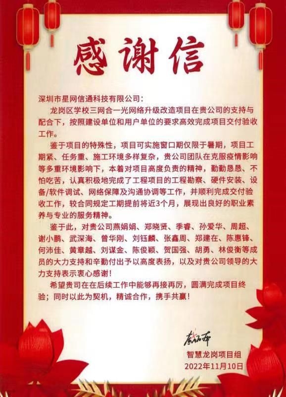 “(TO):參與龍崗區學校三網合一光網絡升級改造項目的同事