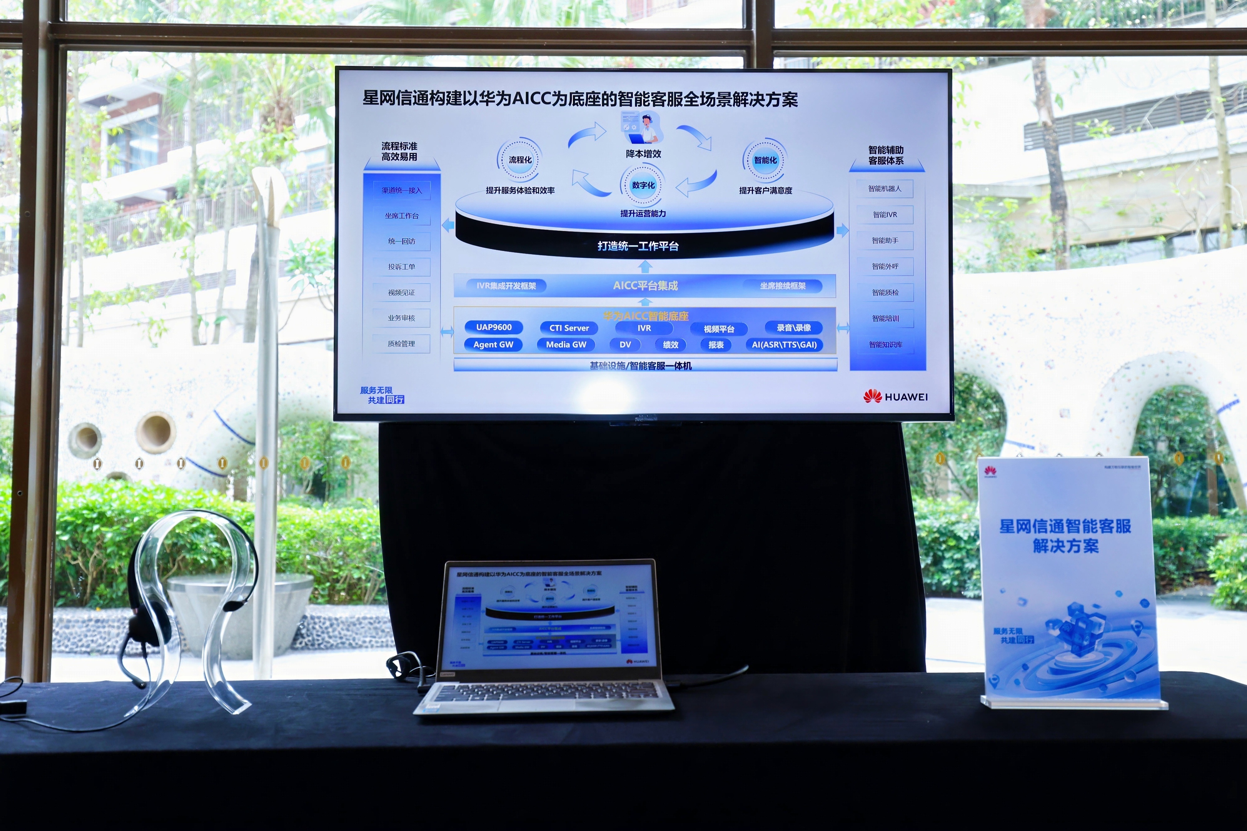 伙伴展臺區,星網信通為來賓詳細介紹了以華為AICC為底座的智能客服全場景解決方案: