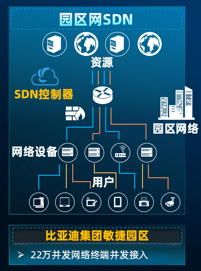 1、【園區網SDN】:應用最前沿的有線和無線技術,加持大數據、AI和云技術,以業務為中心,構建萬物互聯、業務無憂和可平滑演進的園區網絡,幫助行業數字化轉型