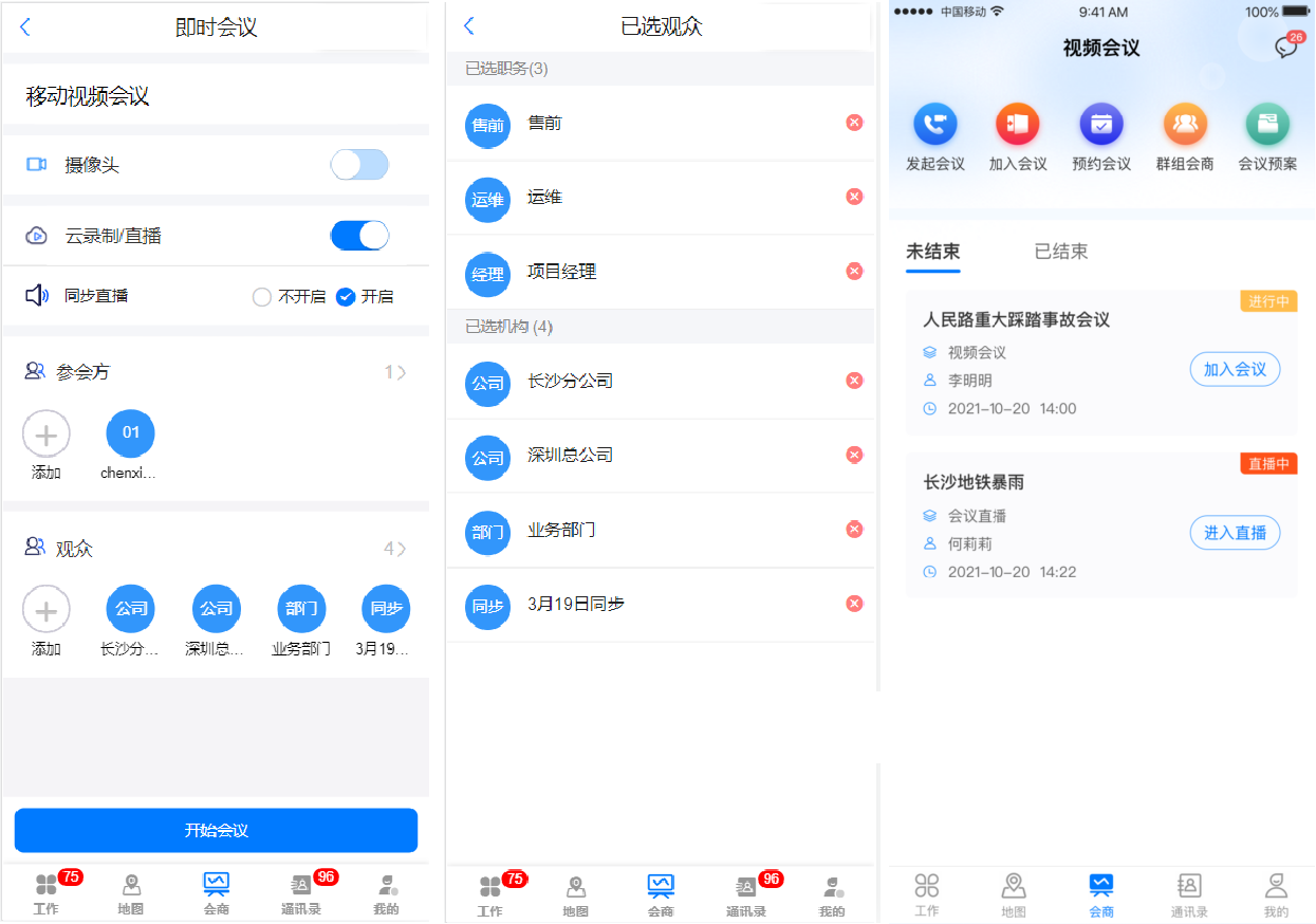 能互動(dòng):觀看會(huì)議直播,系統(tǒng)提供圖文會(huì)話功能,發(fā)送文字、表情、圖片等,默認(rèn)發(fā)送消息全體人員可見(jiàn),支持選擇指定人員進(jìn)行私密溝通。觀看直播能瀏覽會(huì)議共享文檔資料。
